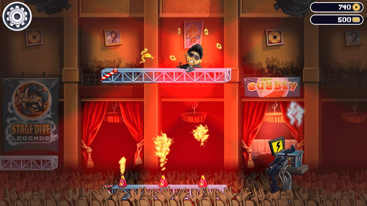 Stage Dive Legends is a super fast runner game with lots of excitement and fun. Play to hard rocking songs, go backstage, customize your favourite rock star and find the best way to top the records! Prove your skills and become a true stage dive legend! Let's rock!